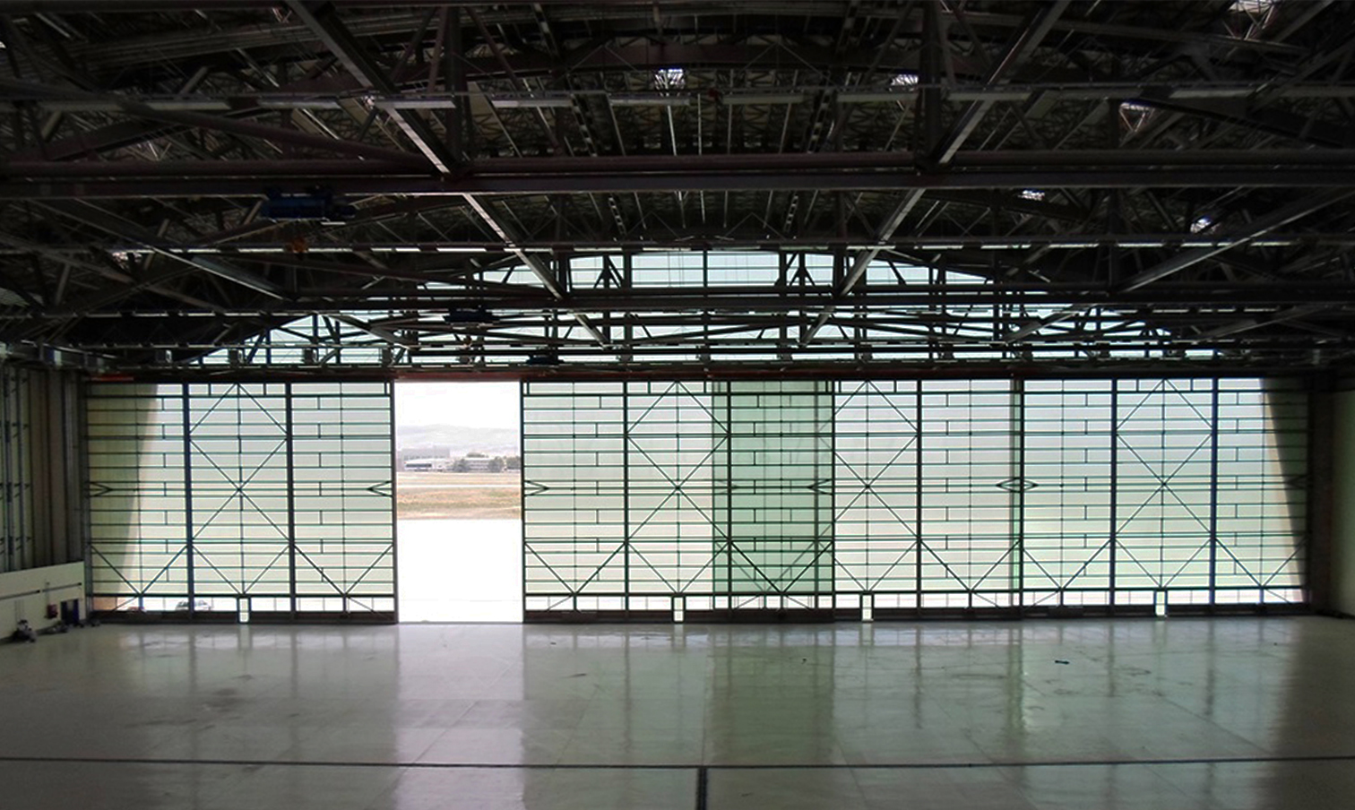 The new aircraft and helicopter hangar will have the capacity to simultaneously undertake first grade maintenance to 5 aircraft and 3 helicopters. With an internal column-free span of 100m, the steel structure is made up of four 10,000sqm. modules. Externally the structural columns and inclined walls, which house the technical service spaces, are clad in natural stone.The long elevation facing the approach road is clad in opaque and transparent glass panels in aluminium framing. The large sliding doors on the airside elevation are composed of translucent panels to allow maximum daylight inside.