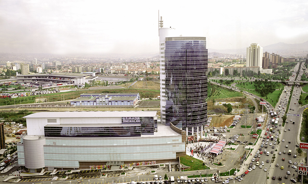 The Armada Shopping Centre in Ankara has been named as "Europe's Best Shopping Mall in 2004" by the International Council of Shopping Centres, the global trade association of the shopping centre industry. GMW MIMARLIK worked with the concept architects, A-Tasarım. The centre occupies a large island site and is a major gateway building when entering Ankara from the west. On each of the rectangular retail floors, shops have been arranged on either side of a mall that forms a continuous loop connecting the four circular atrium spaces, one at each corner. Each atrium is given a different identity by the use of light and colour.