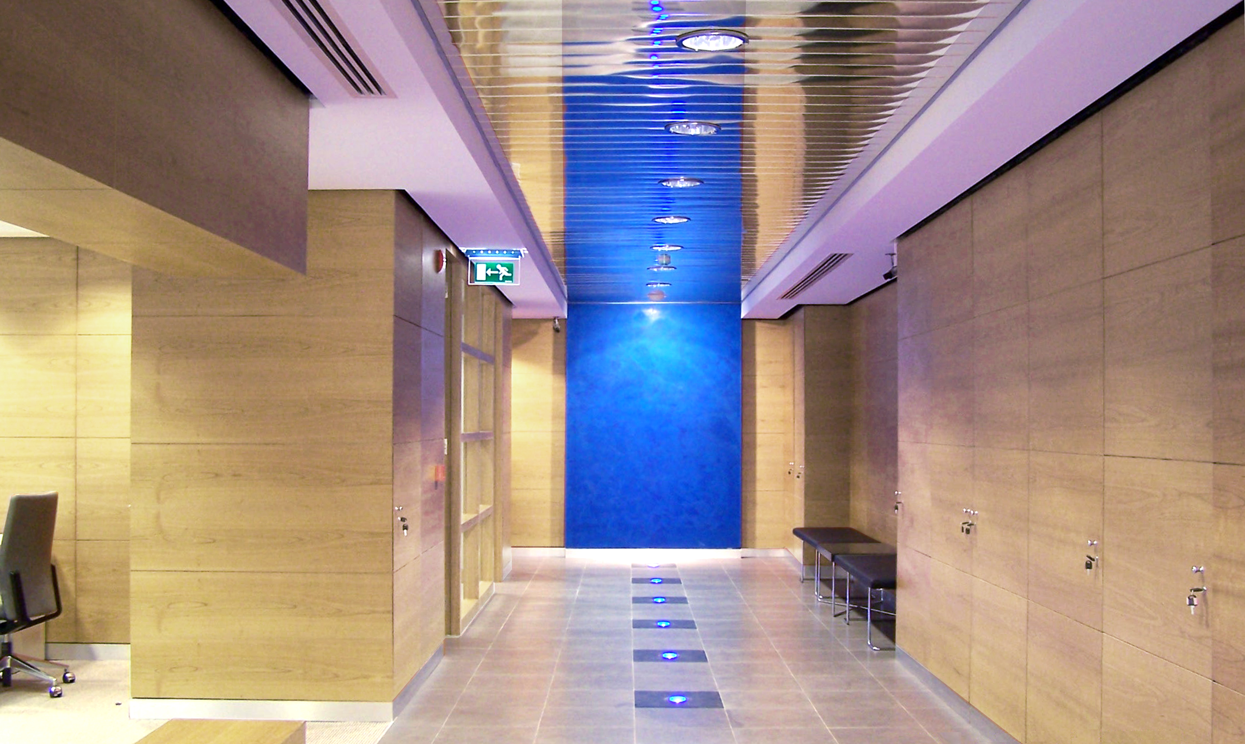 This street branch in Macka Istanbul has been designed as a prototype for all future branches of Deutsche Bank launching into the Turkish market. The design objective was to provide a high quality retail environment with a distinct identity. The front-of-house facilities have been positioned along a central corridor, illuminated with up and down-lighters and terminated with the Bank's logo. The predominantly transparent street façade affords clear views deep into the interior. The artificial lighting of the interior has been so designed that a brightly illuminated interior during open hours transforms into a calm space awash with subdued blue lighting during night-time.